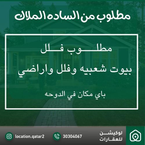 مطلوب عقارات للبيع او للايجار