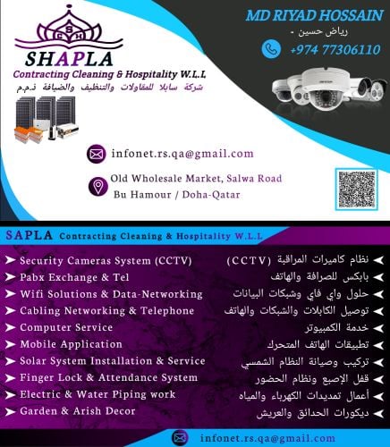 نقوم بتركيب وصيانة كاميرات المراقبة بأسعار تنافسية وجودة عالية رؤية ليلية ونهارية المزارع الفلل المحلات التجارية المدارس الشركاء مع ضمان شامل لمدة سنتين مشاهدتها على الجوال داخل وخارج الدوحة وعلى الشاشة وكذلك جهاز تسجيل لمدة شهر وإتقان العمل هو الأساس خدمات الكاميرات الأمنية 24/7 تركيب كاميرات مراقبة نظام كاميرات المراقبة كاميرا الأمن