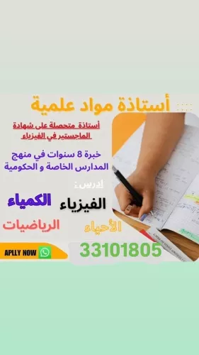 مدرسة كيمياء وقدرة عالية على تدريس كل المواد