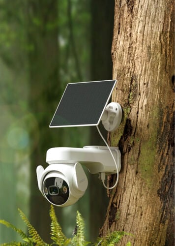 outdoor camera with solar panel, 4G LTE, 360° rotation, auto-tracking and long-lasting 10000mAh battery for security.
