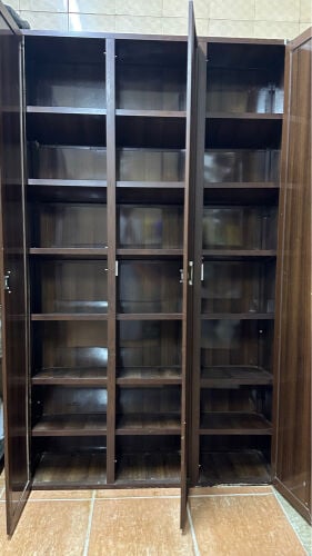دولاب ملابس كبير وعملي مكون من 6 أبواب، بحالة ممتازة ونظيف جداً. يتميز بتقسيم داخلي ذكي يوفر مساحة كافية لتعليق الملابس (مع علاقات) بالإضافة إلى رفوف متعددة لتصفيط الملابس وتنظيمها بشكل مرتب. مناسب للعائلات أو لأي شخص يحتاج مساحة تخزين واسعة مع شكل أنيق وبسيط يناسب جميع الغرف.