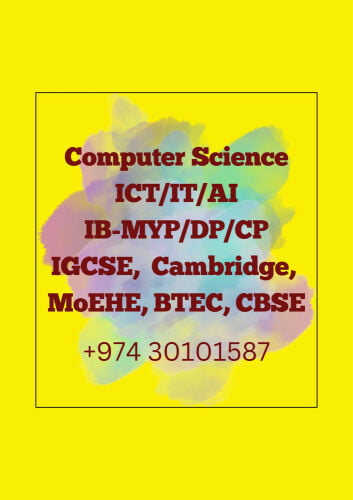 Tutor: Computer Science/ICT/AI/IT MOEHE, IB, IB-MYP/DP/CP, IGCSE A-Level, Cambridge, Pearson BTEC, CBSE, All types of Assignment Assistance