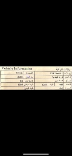 للبيع شفرليه كروز مكينه مخبطه