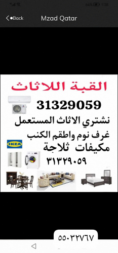 شراء اثاث بيت غرفة نوم وغرف اطفال مكيفات بآنواعها جميع ادوات المطبخ الكهربائيةمن غسالات وبرادات ونقوم بشراء الكنب والتلفزيونات بأنواعها وجميع ادوات ال