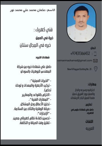 فني كهرباء حاصل علي شهادة دبلوم في الكهرباء