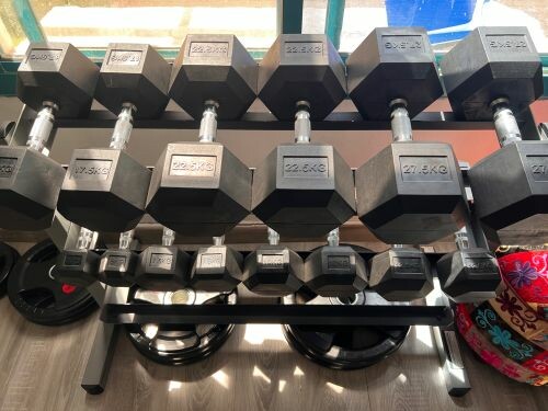 dumbbells plates bars bench