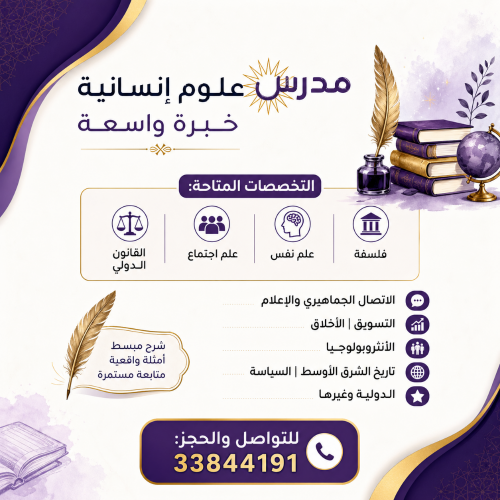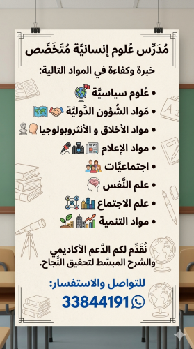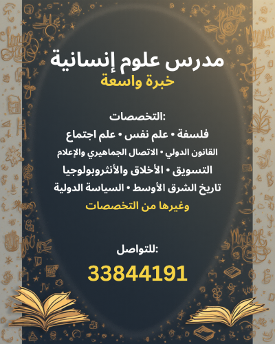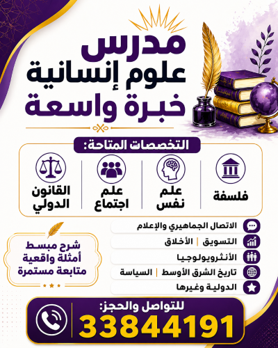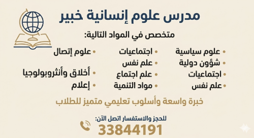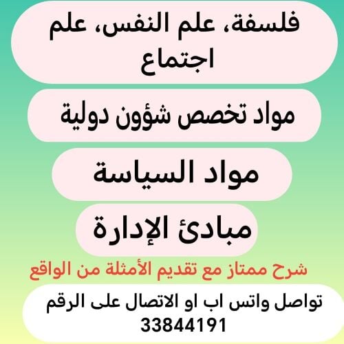 مدرس خبرة في مواد العلوم الانسانية :فلسفة، علم نفس، علم اجتماع، مواد التنمية، اجتماعيات،علوم سياسية، مواد الاتصال الجماهيري...