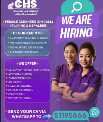 HIRING FEMALE CLEANERS