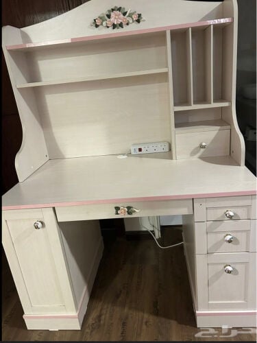 مكتب جميل لون كريمي لمسات وردية
