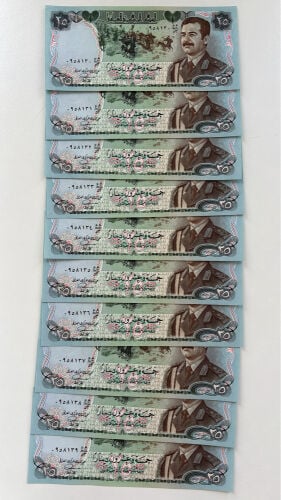 عدد عشر عملات صدام حسين متسلسلة