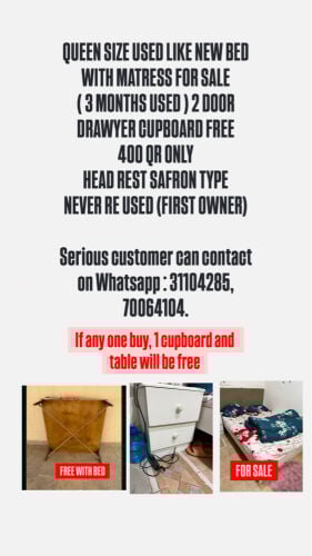 Queen size 3 Months used bed sale