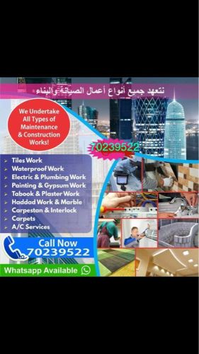 Electric,plumbing,gipsum bord,pinting,tails,welding,brick,plaster ,carpet all categories work